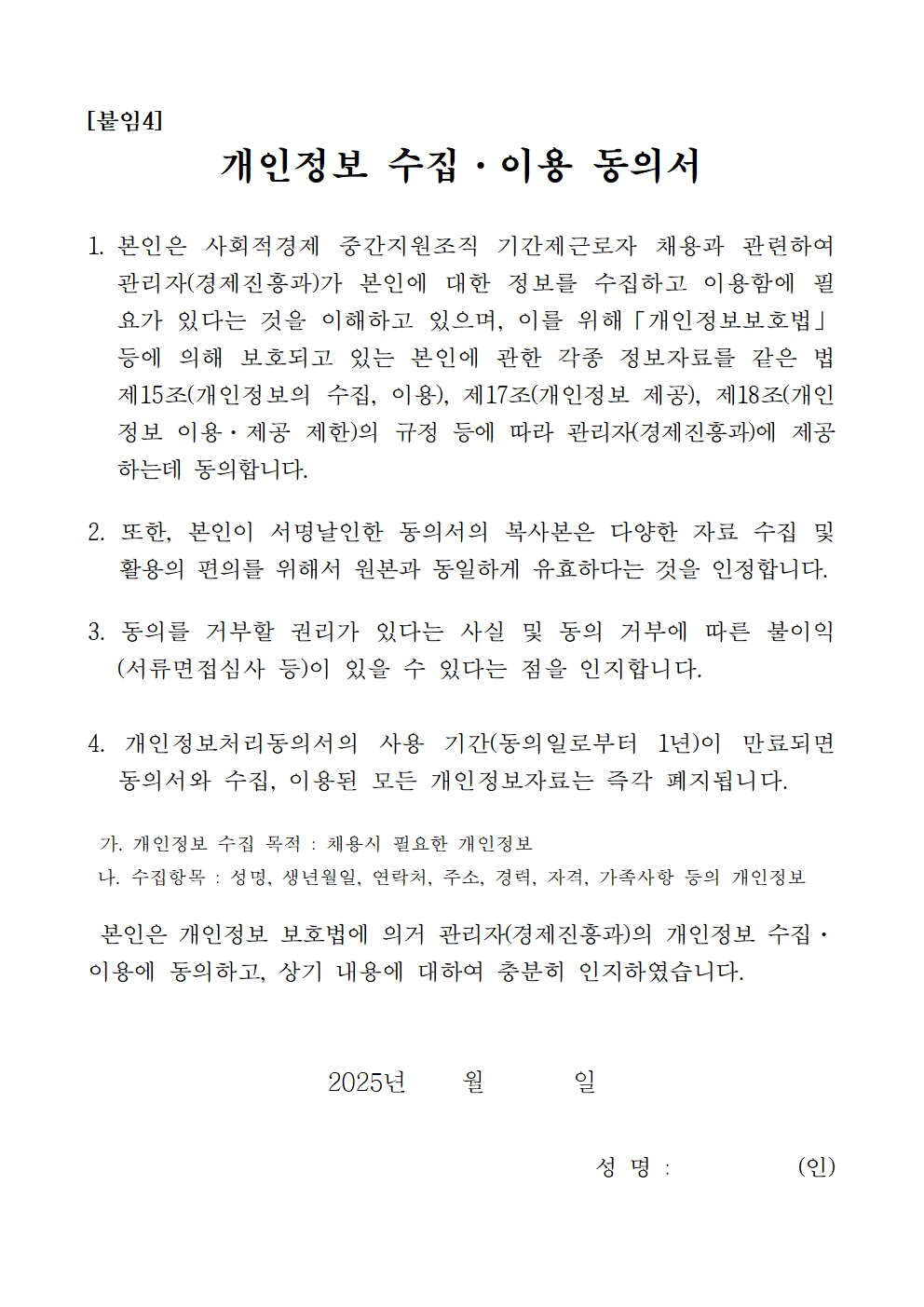 [김제시청] 김제시 사회적경제 중간지원조직 기간제근로자 채용 공고 관리자2025-12-24조회 91 [김제시청] 김제시 사회적경제 중간지원조직 기간제근로자 채용 공고 첨부파일 (팀장)사회적경제 중간지원조직 기간제근로자 채용 공고문.hwpx (76.4 KB) 목록보기 이전글 [공고] 2025 김제시 외국인 근로자 지역 탐방 참가자 모집(마감) 다음글 [김제시청] 김제시 농특산물 홍보판매장 지평선몰 기간제 근로자 채용 공고