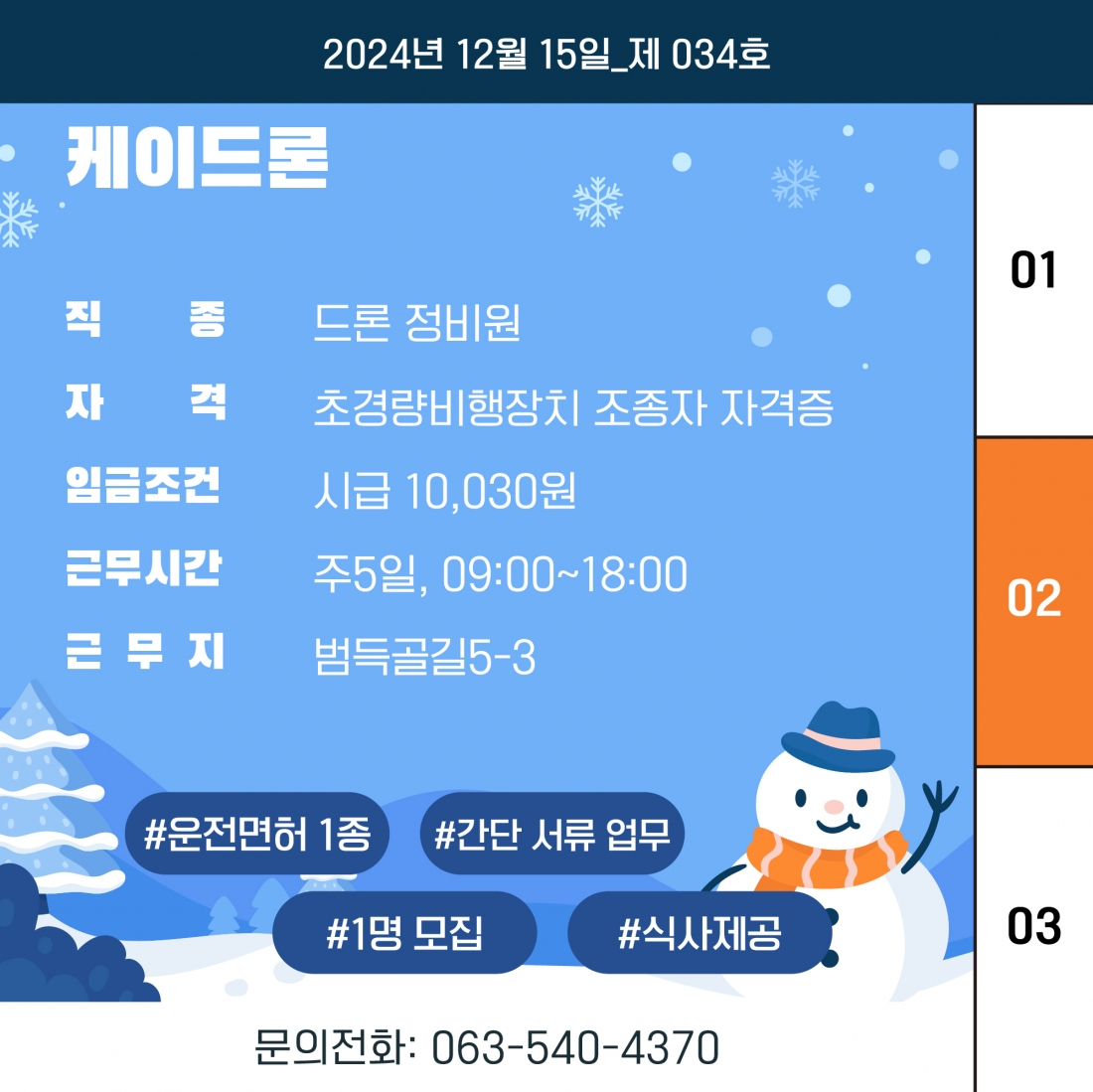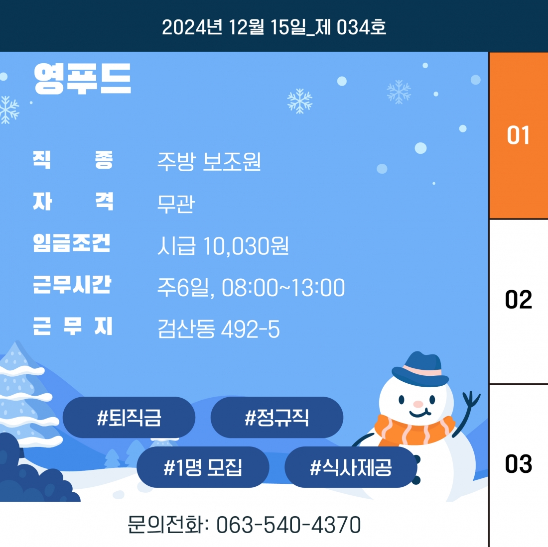 [김제일자리종합지원센터 일자리정보지] 2024년 12월 15일 제 034호 관리자2024-12-16조회 405 목록보기 이전글 2024년 신중년 채용장려금 지원사업 다음글 [김제일자리종합지원센터 일자리정보지] 2025년 새해 인사