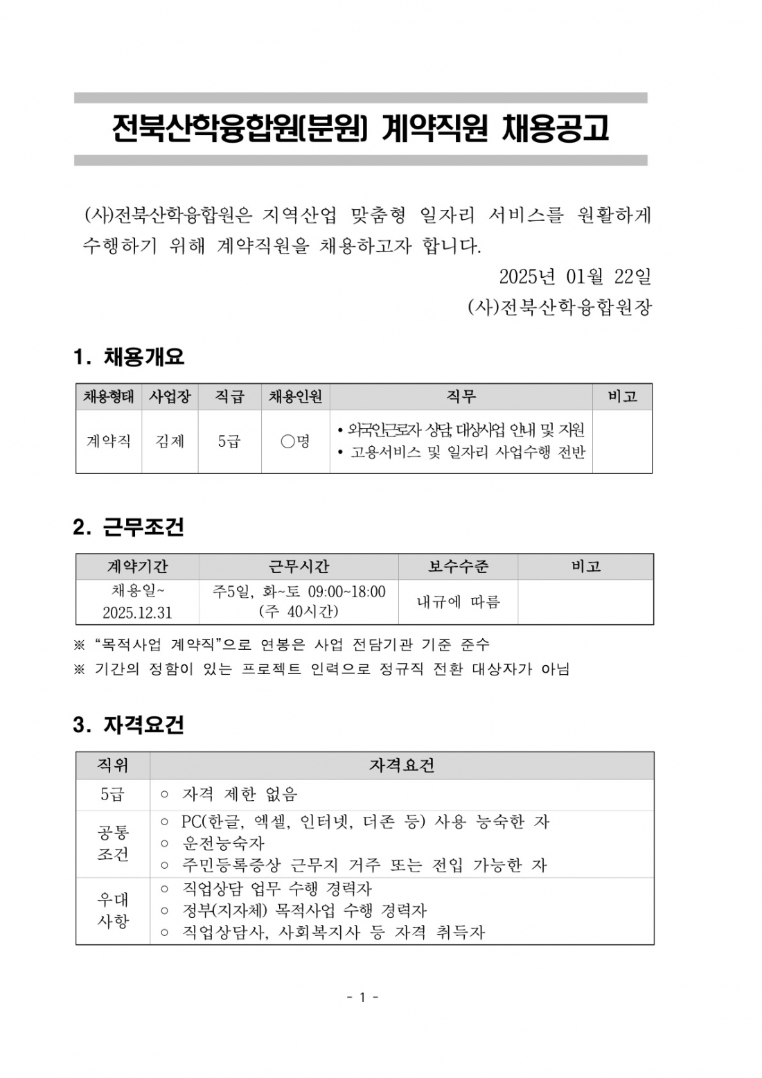 # 문 의 처 : 전북산학융합원 경영관리팀 채용담당자(063-472-2819)