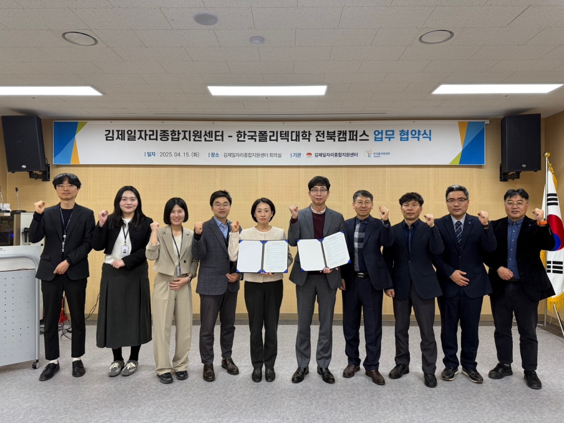2025년 김제일자리종합지원센터 - 한국폴리텍대학 전북캠퍼스 업무 협약식 관리자2025-04-15조회 409 목록보기 이전글 [특수분야 전문인력 집중육성 사업] 특수용접 취업자 및 채용기업 참여자 모집 다음글 2025년 식품산업 고용플랫폼(1차) 운영