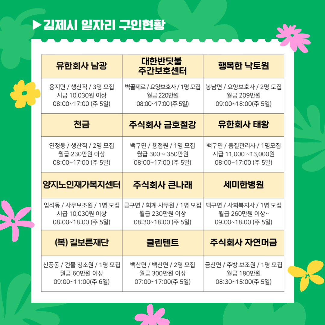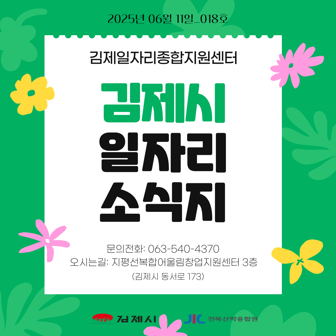 [김제일자리종합지원센터 일자리정보지] 2025년 6월 11일 제 018호 관리자2025-06-11조회 281 목록보기 이전글 2025. 5 찾아가는 일자리 센터 운영(만경읍행정복지센터) 다음글 [김제일자리종합지원센터 일자리정보지] 2025년 6월 16일 제 019호