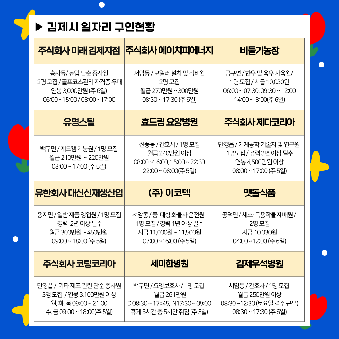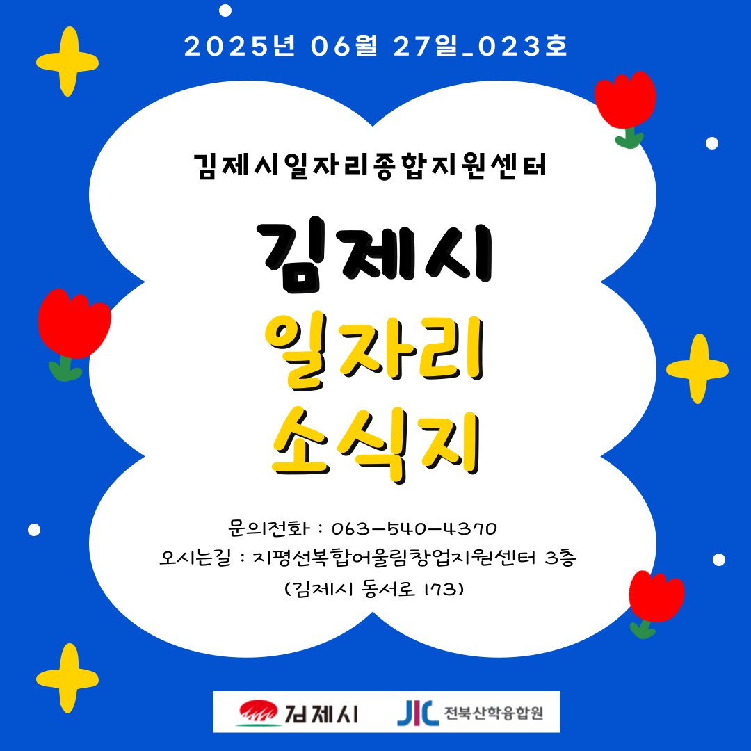 [김제일자리종합지원센터 일자리정보지] 2025년 6월 27일 제 023호 관리자2025-06-27조회 288 목록보기 이전글 [김제일자리종합지원센터 일자리정보지] 2025년 6월 25일 제 022호 다음글 [김제일자리종합지원센터 일자리정보지] 2025년 6월 30일 제 024호