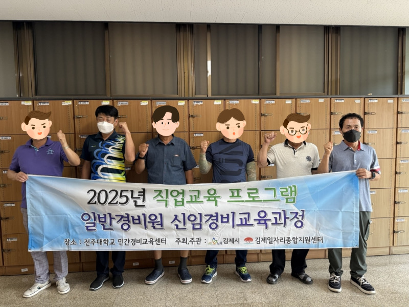 2025. 7 직업교육 프로그램 운영(신임경비이수과정) 관리자2025-07-08조회 251 목록보기 이전글 김제일자리종합지원센터 이전 개소식 안내 다음글 2025. 7 일자리매칭데이(코팅코리아)