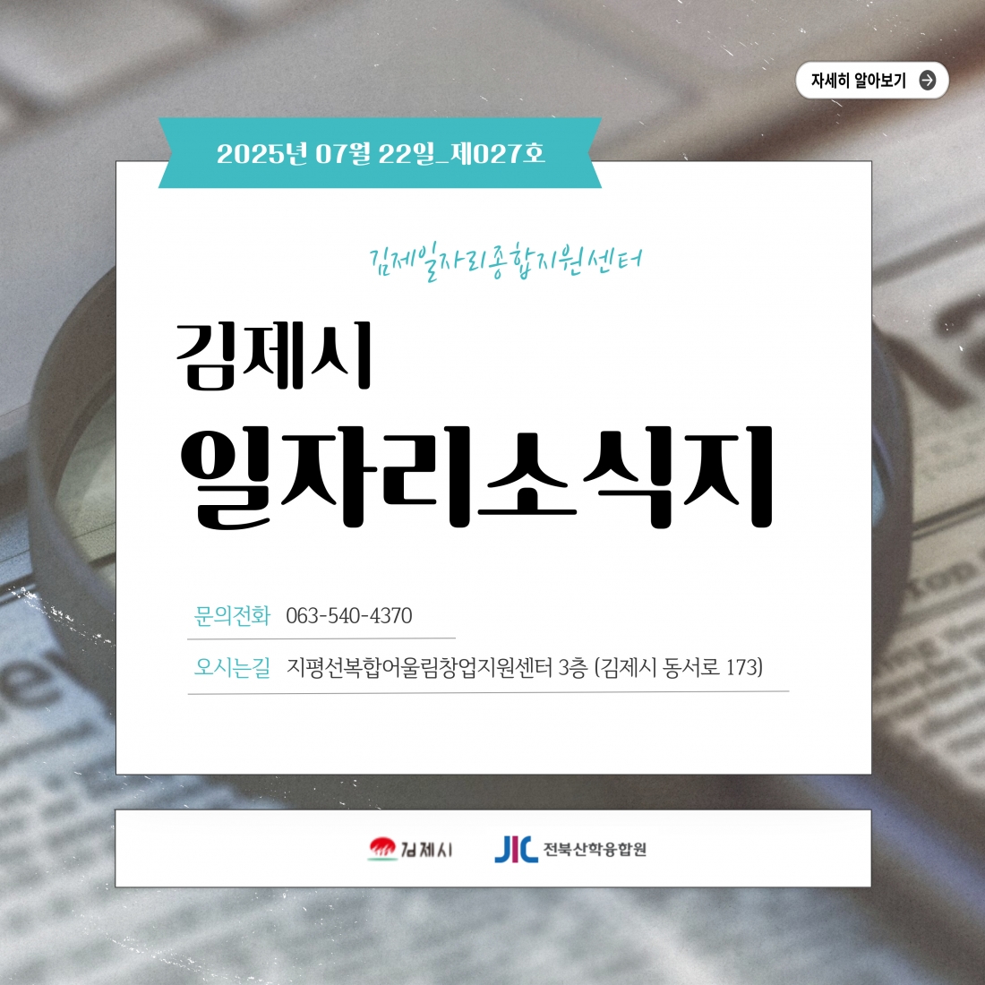 [김제일자리종합지원센터 일자리정보지] 2025년 7월 22일 제 027호 관리자2025-07-22조회 269 목록보기 이전글 2025. 7 김제일자리종합지원센터 이전 개소, 커피차 이벤트 다음글 [김제일자리종합지원센터 일자리정보지] 2025년 7월 24일 제 028호