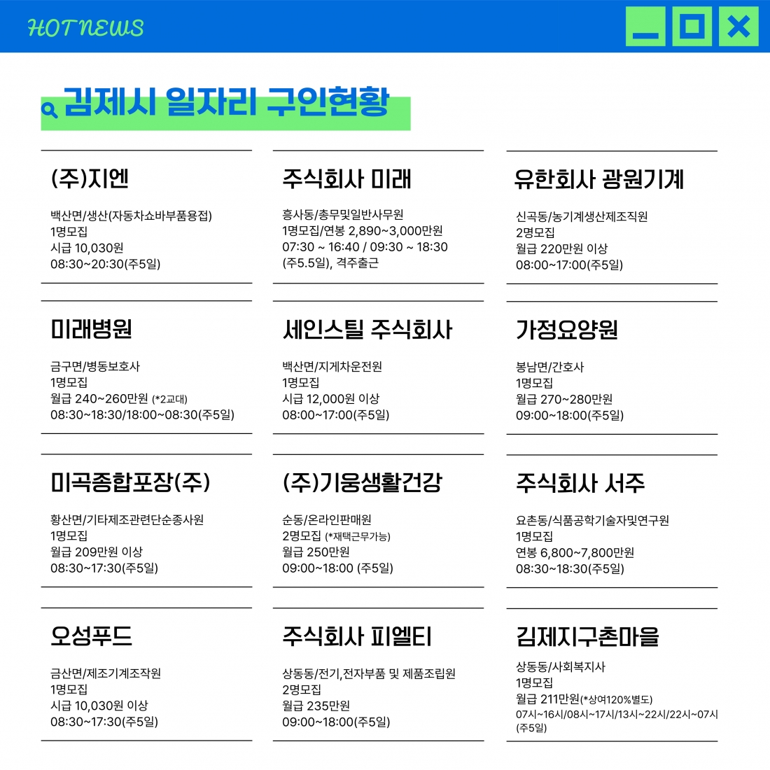 [김제일자리종합지원센터 일자리정보지] 2025년 8월 6일 제 031호 관리자2025-08-06조회 263 목록보기 이전글 [김제일자리종합지원센터 일자리정보지] 2025년 8월 1일 제 030호 다음글 [김제일자리종합지원센터 일자리정보지] 2025년 8월 7일 제 032호