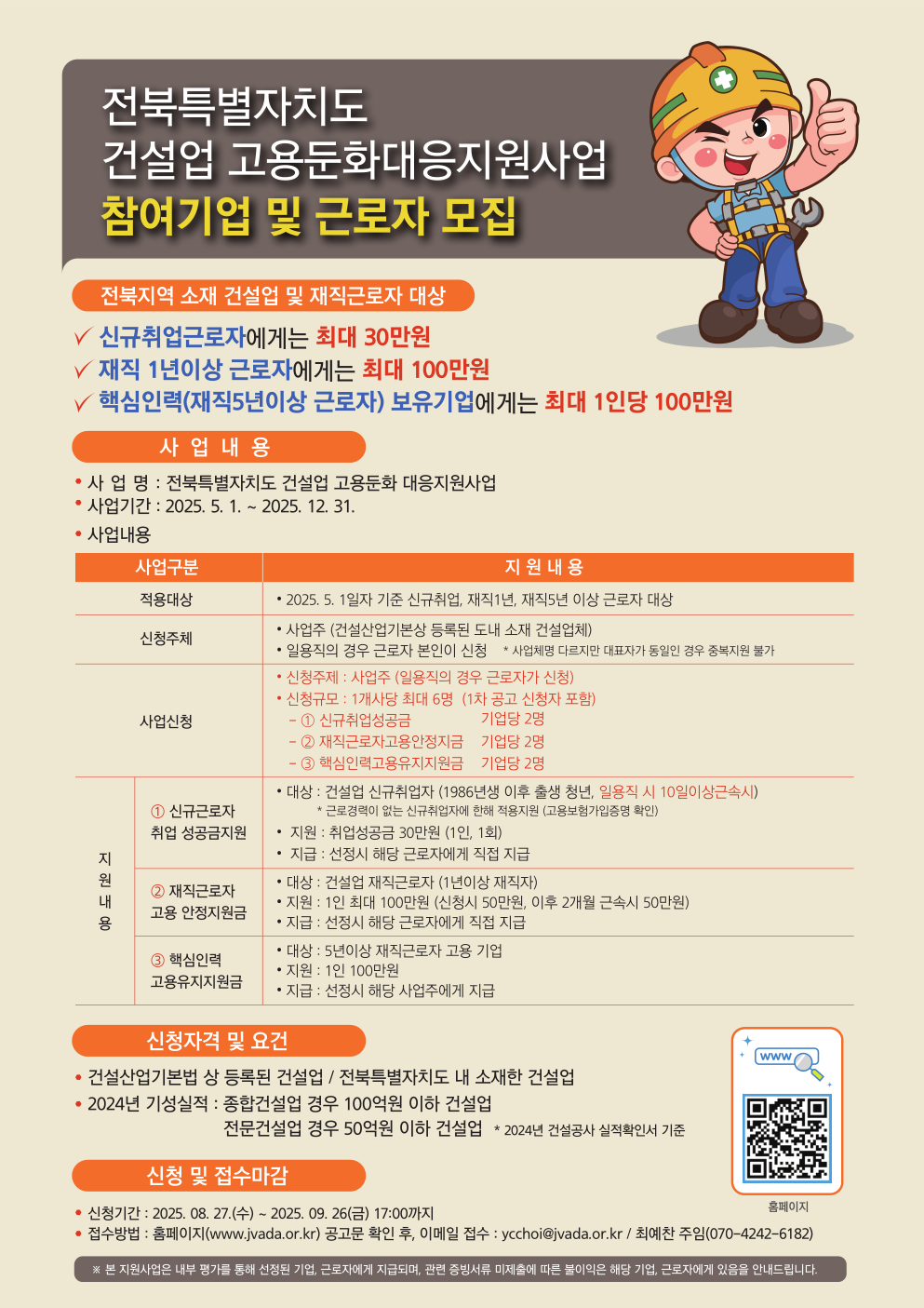 전북특별자치도 건설업 고용둔화대응지원사업 관리자2025-09-05조회 229 목록보기 이전글 2025년 한국형 퀵스타트 프로그램 교육생 모집 다음글 내:일(My job)을 여는 2025년 김제시일자리박람회