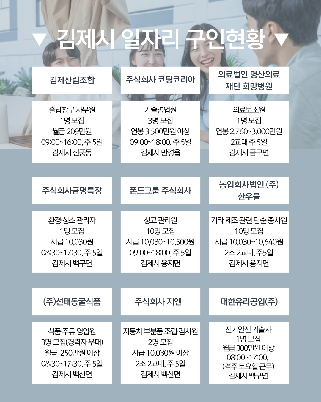 [김제일자리종합지원센터 일자리정보지] 2025년 9월 25일 제 038호 관리자2025-09-25조회 202 목록보기 이전글 2025년 자동차산업 고용플랫폼(2차) 운영 다음글 [김제일자리종합지원센터 일자리정보지] 2025년 10월 1일 제 039호