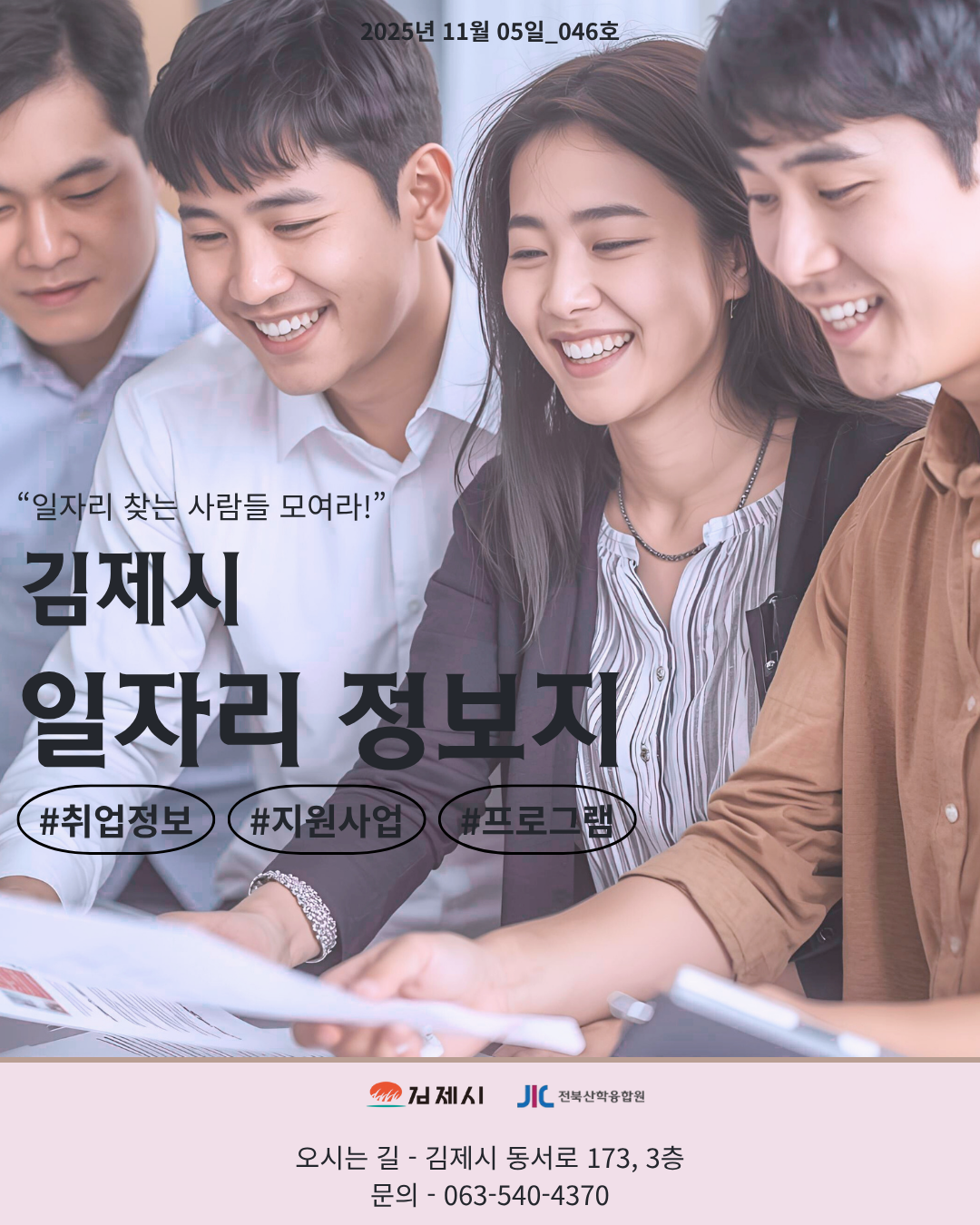 [김제일자리종합지원센터 일자리정보지] 2025년 11월 5일 제 046호 관리자2025-11-05조회 128 목록보기 이전글 [김제일자리종합지원센터 일자리정보지] 2025년 11월 4일 제 045호 다음글 Global Worker’s 같이 가요 : 김제