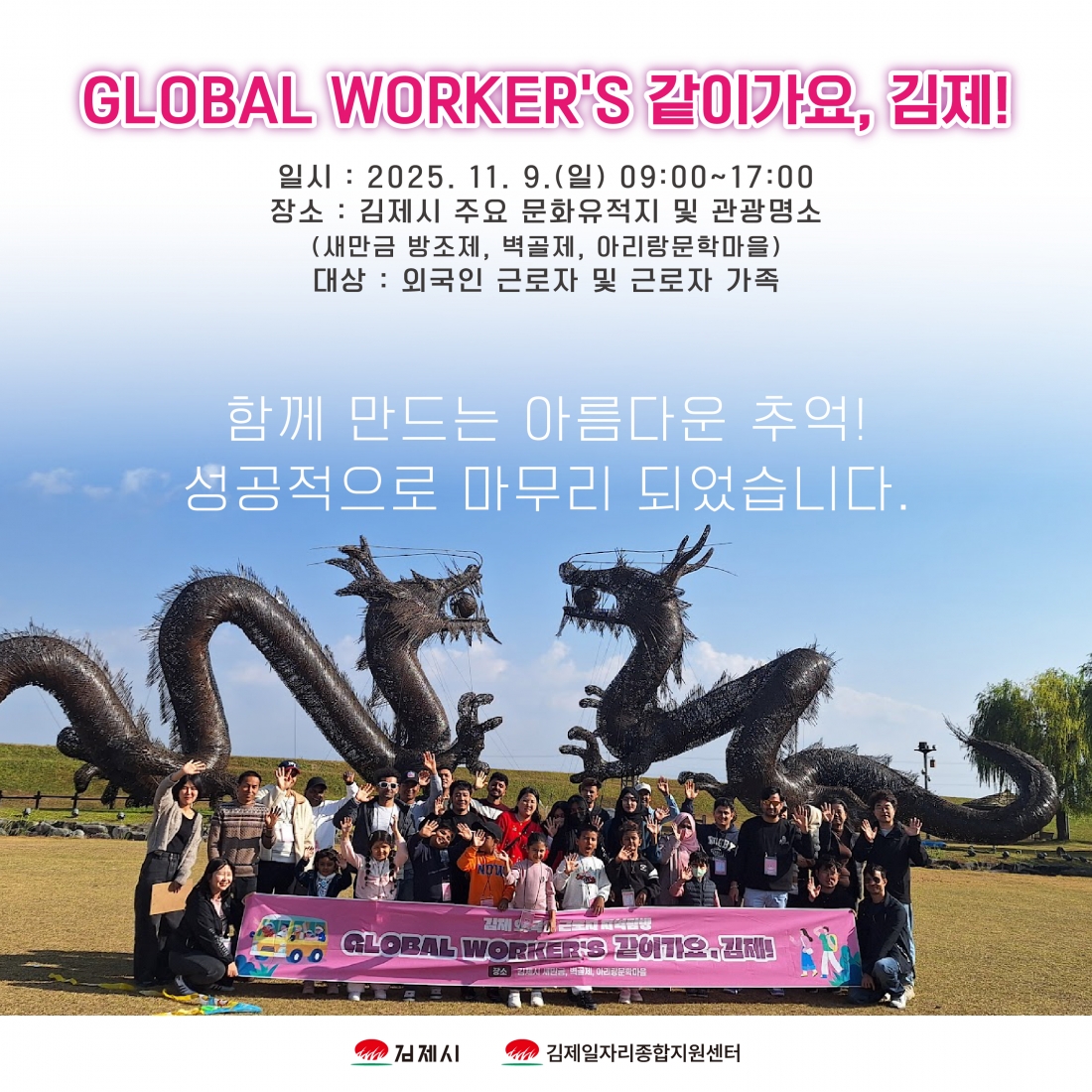 Global Worker’s 같이 가요 : 김제 관리자2025-11-09조회 109 목록보기 이전글 [김제일자리종합지원센터 일자리정보지] 2025년 11월 5일 제 046호 다음글 [김제일자리종합지원센터 일자리정보지] 2025년 11월 10일 제 047호