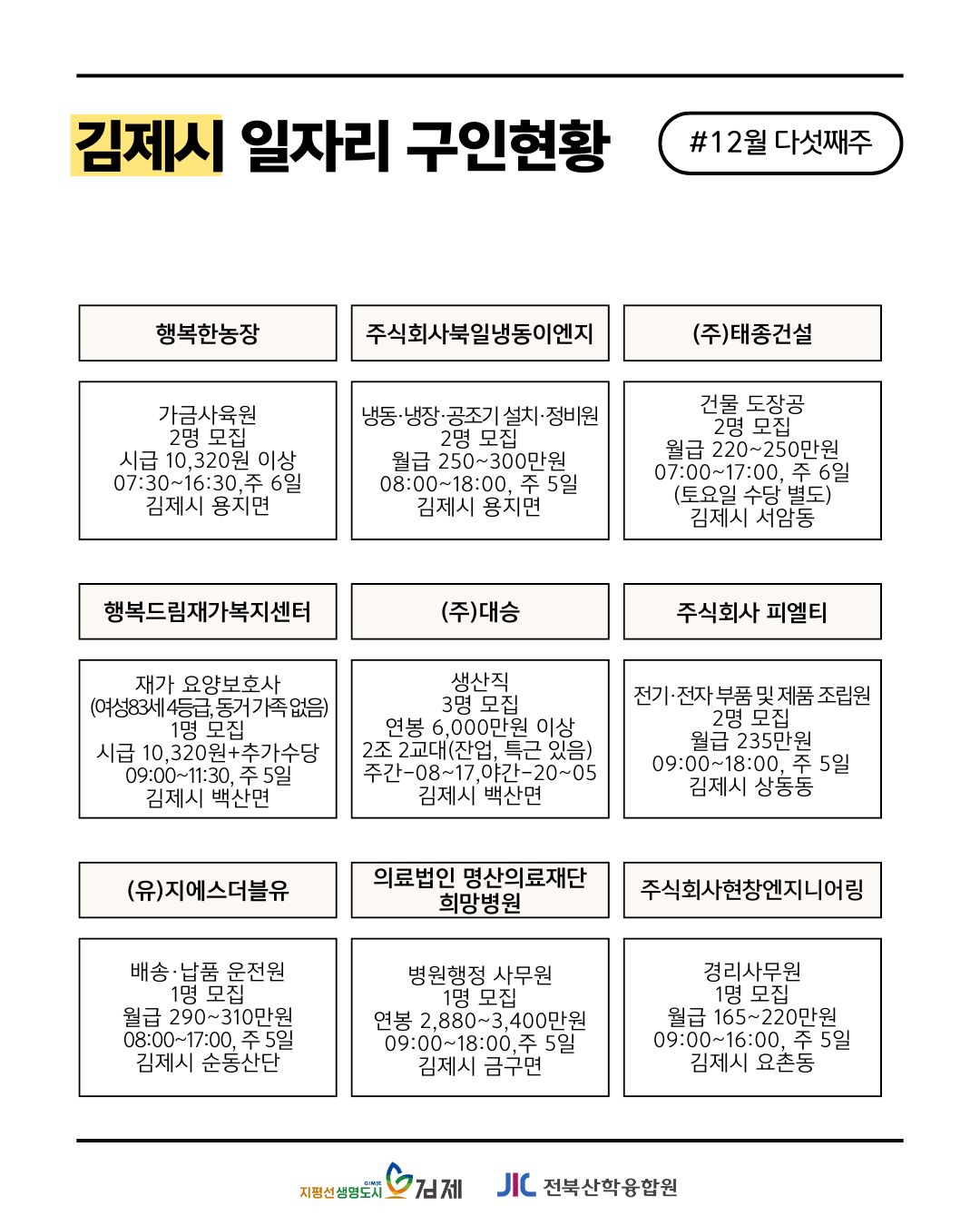 [김제일자리종합지원센터 일자리정보지] 12월 다섯째주 관리자2025-12-30조회 56 목록보기 이전글 [김제일자리종합지원센터 일자리정보지] 12월 셋째주 다음글 [김제일자리종합지원센터] 새해 인사